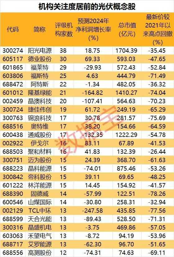 从股价表现来看,多数光伏概念股近3年股价持续回调,平均回撤幅度达56.16%,部分个股回撤超70%。然而,机构普遍认为,随着行业拐点的到来,这些公司的股价有望迎来反弹。
