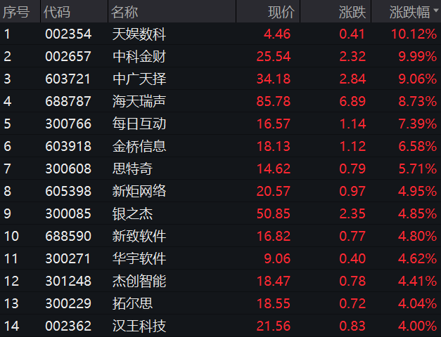 在资本市场上,数据要素概念股表现抢眼。早盘,中科金财、天娱数科等多只数据要素概念股涨停,金桥信息、中广天择等盘中涨停,海天瑞声、每日互动、思特奇等个股也涨幅居前。多家上市公司在投资者问答平台上透露,已在数据产业有所布局。例如,中科金财围绕金融机构、政府与公共事业、企业等客户群体,提供金融科技和数据中心综合服务;天娱数科则打造了数字经济品牌园区“数据流量谷”,已在山西、大连等地投运。