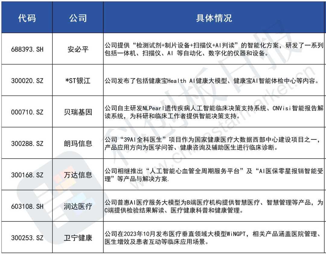 据统计,A股市场上有多家上市公司布局医疗诊断领域的人工智能应用场景,涵盖了医学影像、智能问诊、病理AI等多个方面。