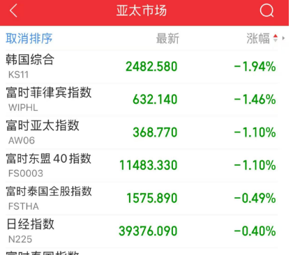 与此同时,亚太地区股市也全线下跌,中国台湾地区股市跌幅超过2%,韩国股市接近2%的跌幅,日经225指数也下跌了0.4%。