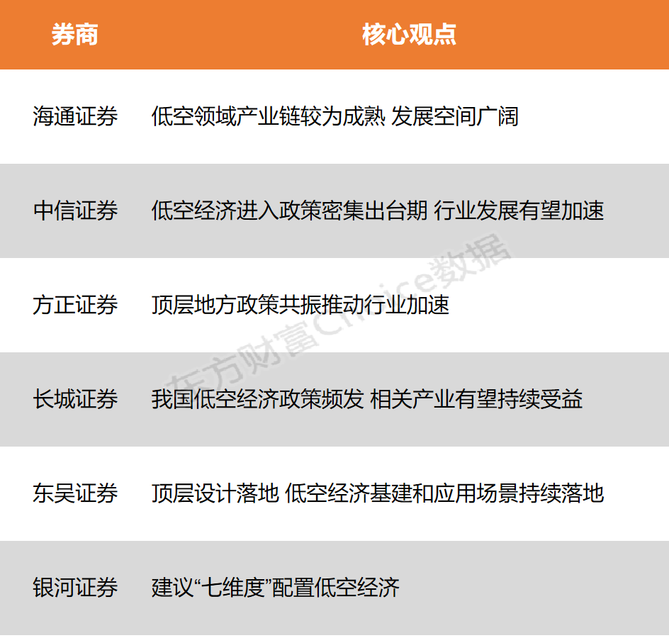 东吴证券认为,国家级部门和顶层设计的落地,将推动低空经济基础设施建设和应用场景的持续落地,相关企业和产品型厂商有望率先受益。