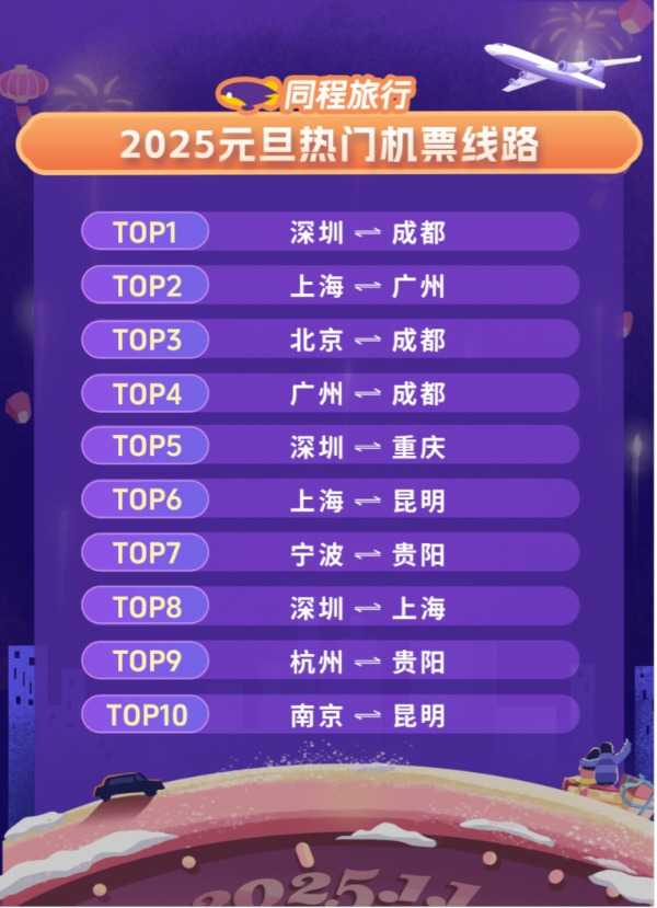 此外,今年元旦假期中,深圳至重庆的航班因高人气也成为了最热门的国内机票航线之一,进一步彰显了重庆作为热门旅游目的地的吸引力。