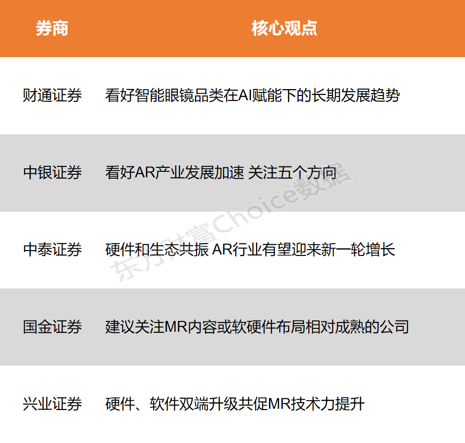兴业证券:认为MR设备的硬件与软件双端升级将共同推动其技术力的提升。长期来看,MR设备有望实现对手机等终端设备的替代。同时,MR与AI的结合将带来更好的交互体验,有望打造新的内容范式。