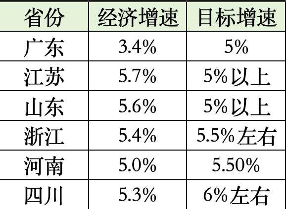 前三季度,六大经济大省整体表现不俗,江苏增速最快,达5.7%,社会消费品零售总额、固定资产投资、进出口总额均实现正增长。江苏全年目标为增长5%以上,目前看有望如期完成。四川、浙江、河南等省年初设定的目标也均在5%左右或以上。