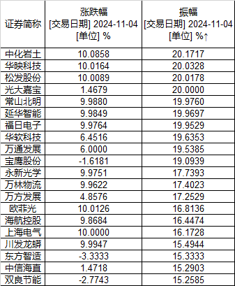 在今日的复盘中,我们将重点关注“花式翘板大赛”中的几类典型个股。数据显示,沪深主板振幅在15%~20%的个股有21只,其中收盘涨停的(即地天板/准地天)为12只,录得正涨幅的则有18只。