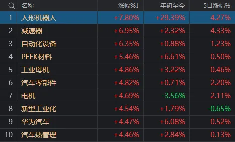 今日另一个备受关注的板块是人形机器人概念。该板块在消息面的催化下迎来涨停潮。波士顿动力在宣布人形机器人Atlas全面电动化后取得了巨大进展,并已实现全自动工作。此外,近期机器人领域催化频发,包括全球移动机器人新品发布路演日及小鹏AI科技日等活动即将召开。