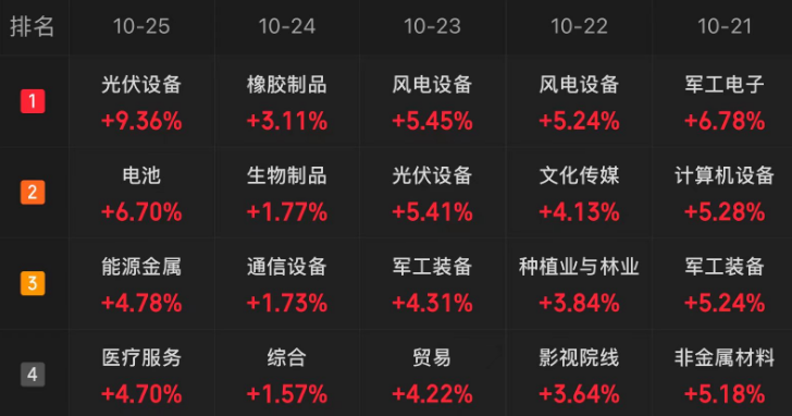 10月25日,A股市场全天冲高回落,创业板指领涨。新能源赛道本周涨幅最大,光伏、锂电池等板块涨幅居前。市场风险偏好较高,融资资金持续增加,机构认为市场大概率呈现震荡上行走势。