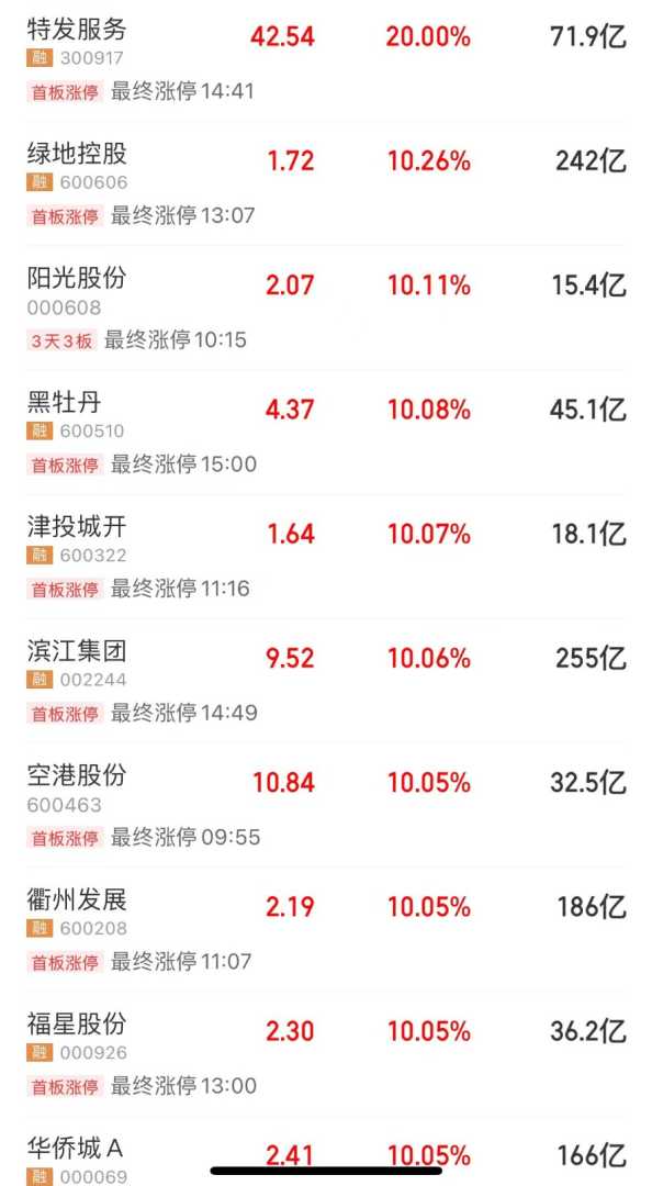 板块方面,全线飘红,白酒、房地产、食品加工制造、饮料制造以及证券等板块成为领涨先锋。其中,地产股表现尤为抢眼,掀起涨停潮,万科A、招商蛇口、保利发展、金地集团、新城控股等30余只个股纷纷封上涨停板。