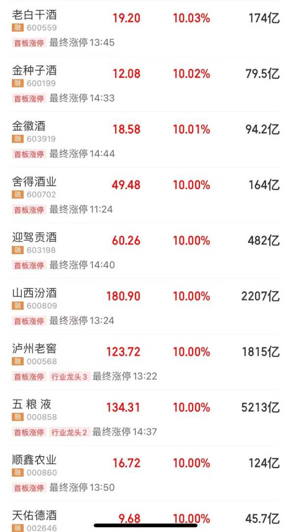 以白酒为首的消费股同样迎来全面爆发,五粮液、山西汾酒、泸州老窖、酒鬼酒、中国中免、中炬高新等近50只个股强势涨停,贵州茅台股价更是大涨超9%,成功收复1500元整数关口,彰显市场对其未来发展的坚定信心。