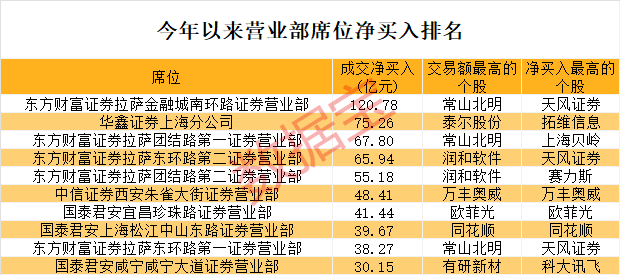 东方财富证券拉萨金融城南环路证券营业部成交额破千亿元,位居榜首。净买入金额前三名分别为东方财富证券拉萨金融城南环路营业部、华鑫证券上海分公司和东方财富证券拉萨团结路第一证券营业部。