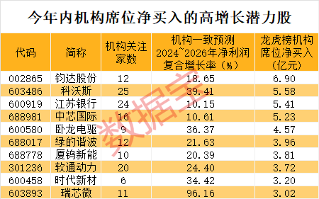 政策引导机构投资者注重长期价值投资。今年以来,机构席位交易金额占比与个股市值、净资产收益率等正相关,反映出机构更加理性,偏好市值高、机构关注度高的绩优股。超800只个股获龙虎榜机构席位净买入,其中21只净买入金额超3亿元。
