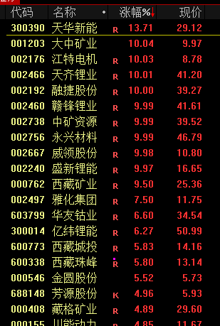 在板块方面,新能源板块表现抢眼,锂矿股更是大幅拉升,天齐锂业、融捷股份、永兴材料、中矿资源、赣锋锂业、盛新锂能等多只个股强势封板。这一强势表现也带动了碳酸锂期货主力合约一度涨超5%。