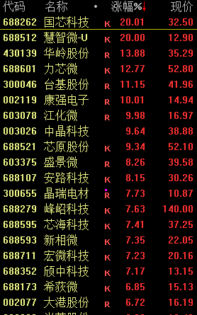 此外,半导体板块也迎来了反弹,国芯科技、江化微、康强电子、盈方微、盛剑科技等多只个股涨停,为市场注入了一抹亮色。