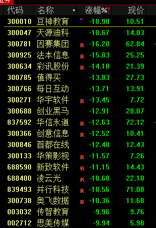 AI应用方向集体受挫,豆神教育等多股跌幅超过10%。地产股则表现活跃,黑牡丹、金融街、荣盛发展等涨停。