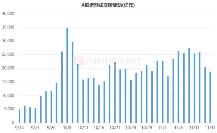 本周以来,市场交投活跃度有所下降,截至11月14日,沪深京三市成交总额约为1.87万亿元,相比上周五(2.73万亿元)下降了近8600亿元。然而,ST板块作为活跃资金的聚集地,依然保持着高热状态。今日ST板块的成交总额约为155.3亿元,周内日均成交总额约为134.9亿元,均高于上周五的成交规模(125.6亿元),成为当前市场中少数仍然活跃的方向之一。