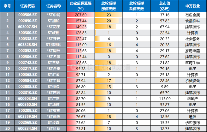 注:9月18日以来涨幅居前的ST股(截至11月14日收盘)