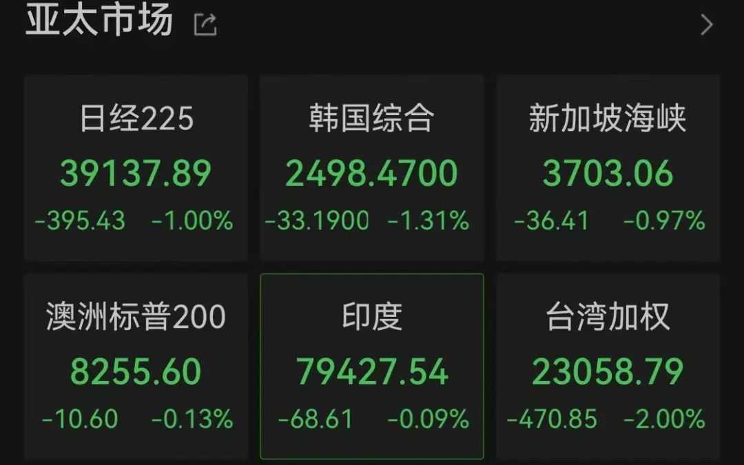 亚太其他市场同样表现不佳,日经225指数和韩国综合指数分别下跌1%和超过1%。
