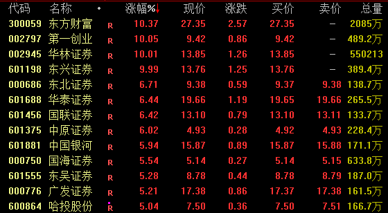 市场交投氛围极为活跃,场内超过5000只股票上涨,涨停股票数量超过200只。券商板块作为“牛市旗手”,再度扛起领涨大旗,东方财富涨幅超过10%,成交额位居A股首位,达到552.7亿元。第一创业、华林证券、东兴证券等股票纷纷涨停,广发证券、中信证券涨幅接近5%。同时,保险板块也表现出色,新华保险涨幅接近8%,中国人寿大涨超过6%。