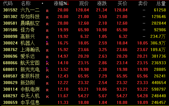 军工板块表现同样活跃,六九一二、华如科技、晨曦航空、佳力奇等股票20%涨停,爱乐达涨幅接近15%,航天宏图涨幅超过14%,利君股份、联创光电、中航沈飞等股票也纷纷涨停。珠海航展武器装备的集体亮相有望继续吸引资本市场对军工行业的关注,特别是新型装备、军贸、无人及反无人、低空经济等新质新域领域。