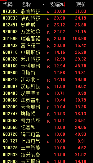 机器人概念板块异军突起,机器人、瑞迪智驱、拓斯达、天奇股份、爱仕达、鸣志电器、中大力德等多只个股纷纷涨停,成为市场关注的焦点。