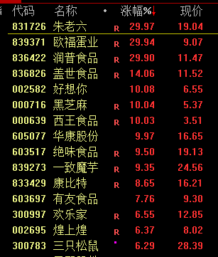 食品等消费板块继续升温,朱老六、黑芝麻、西王食品、好想你等个股涨停,显示出消费市场的强劲复苏势头。
