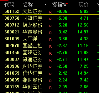券商股也未能幸免,天风证券尾盘触及跌停,国海证券、锦龙股份、太平洋等个股也纷纷跟跌,市场权重板块承压。