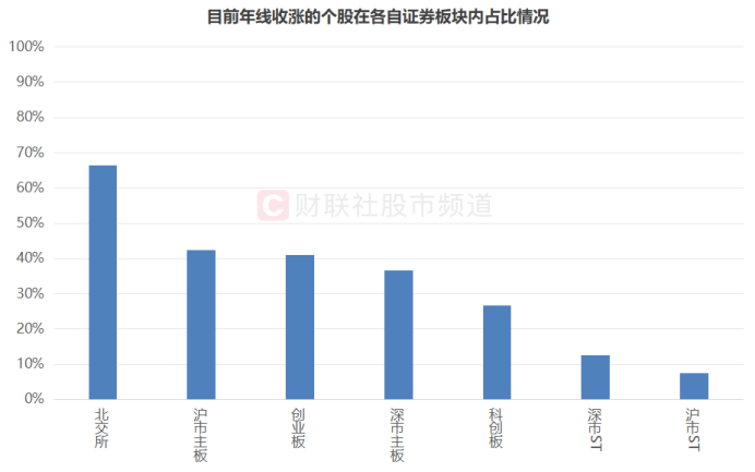 注:截至10月25日收盘,年线收涨个股在各自证券板块内占比情况