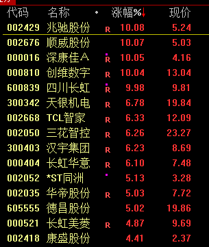 风电股同样活跃,晶澳科技等个股涨停。食品消费股拉升,西王食品等个股封板。证券板块尾盘再度冲高,天风证券涨停,带动锦龙股份等多股跟涨。家电板块表现突出,深康佳A等个股涨停。