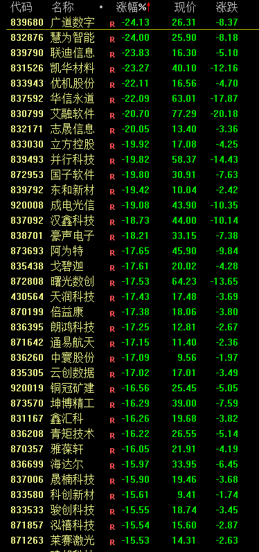 下跌方面,跨境支付概念股集体大跌,艾融软件等多股跌超10%。北交所股票波动剧烈,广道数字等多股跌超10%。
