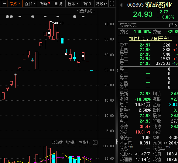 与此同时,受到并购重组政策利好的影响,ST板块表现强劲。然而,真正的重组题材在超涨之后也迎来了回调。其中,光智科技大跌近14%,位居跌幅榜首位,该股自10多天前已从115.55元/股回调至73.4元/股,跌幅超过36%。另一只重组牛股双成药业则连续一字跌停,最新股价为24.93元/股,相比10月底高点大跌逾39%。