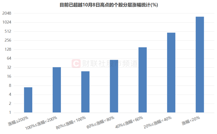 注:目前已超越10月8日高点的个股分层涨幅统计