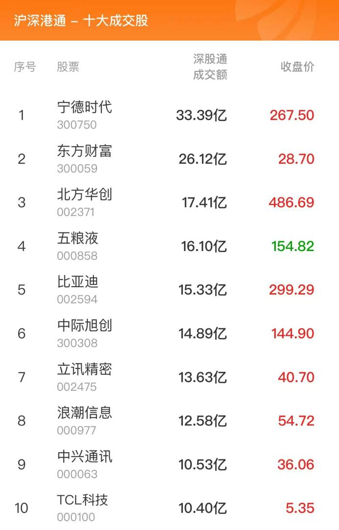 在陆股通十大成交股方面,交易所公布的数据显示,沪股通前三名分别为中信证券、工业富联和贵州茅台,它们的成交额分别达到23.65亿元、22.46亿元和19.18亿元。而在深股通方面,宁德时代、东方财富和北方华创位列前三,成交额依次为33.39亿元、26.12亿元和17.41亿元,这些股票的活跃交易反映了市场资金的流向和热点。