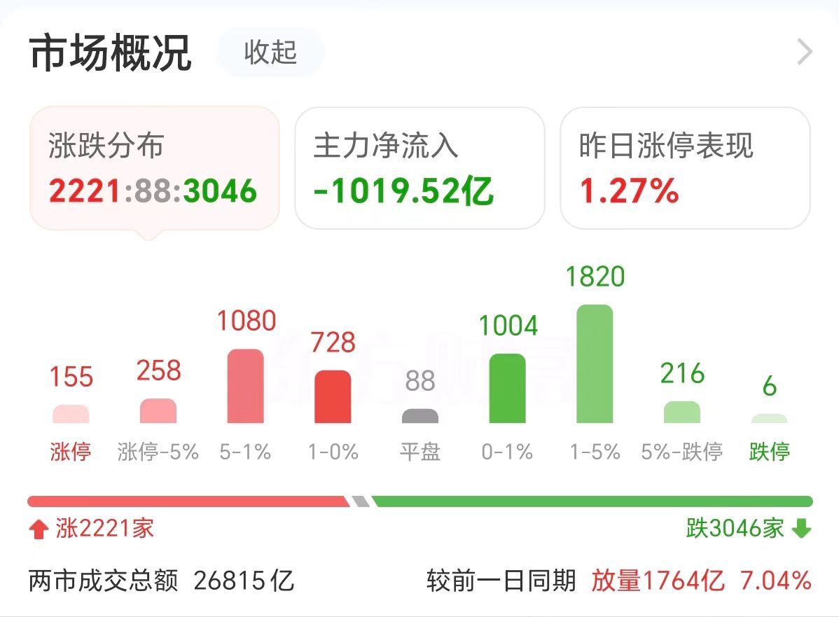 今日(11月8日),A股市场呈现高开低走的态势,其中创业板指表现尤为疲弱,领跌两市。全天成交额达到2.68万亿元,创下自10月10日以来的新高,相比上一个交易日增加了1764亿元。截至收盘,沪指下跌0.53%,深成指下跌0.66%,创业板指更是下跌了1.24%。