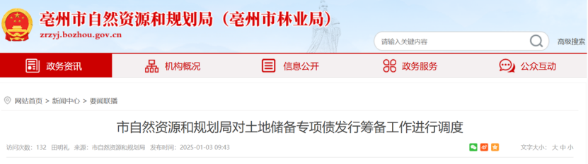 而在1月3日,安徽亳州市自然资源和规划局也调度了土地储备专项债发行筹备工作。据梳理,亳州市计划申报2025年度63个收回收购存量闲置土地项目,并申请土地储备专项债券108.14亿元。该局表示,将继续指导县区准确把握国家专项债券资金政策,逐个破解回收回购中的问题,确保项目顺利推进。