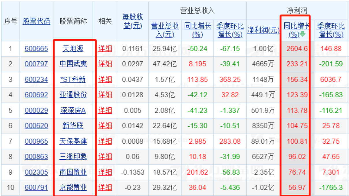 2024年前三季度A股归母净利润同比增长前十房企(截至10月30日20:40)来源:东方财富