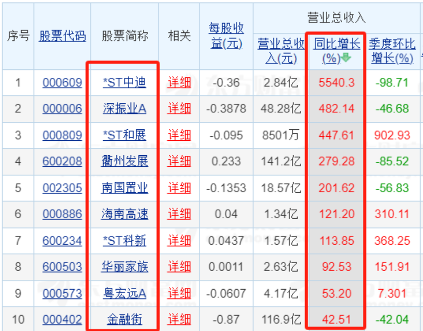 2024年前三季度A股营收同比增长前十房企(截至10月30日20:40)来源:东方财富