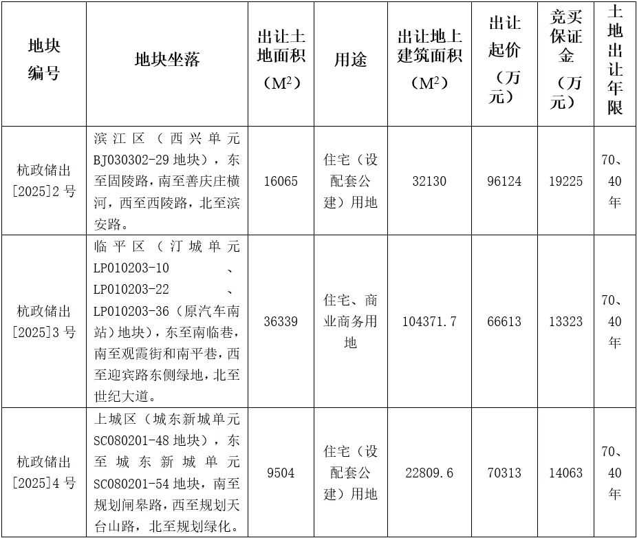 杭州三宗涉宅地块挂牌出让,总面积超6万平米