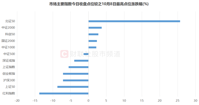 注:市场主要指数今日收盘点位较之10月8日最高点位涨跌幅(截至11月11日收盘)