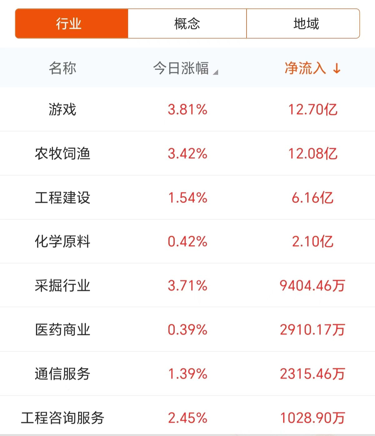 在资金流向方面,今日游戏、农牧饲渔等板块成为主力资金抢筹的热门。特别是游戏板块,净流入金额高达12.70亿元,显示出市场对该板块的高度关注。