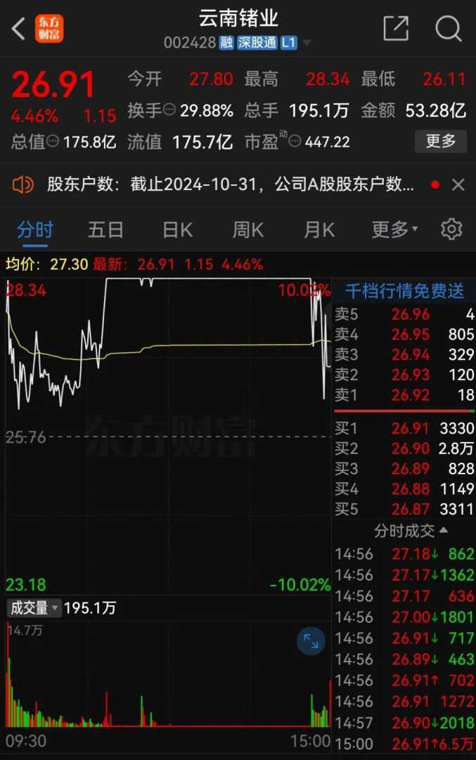 11月6日上午,云南锗业股价再度涨停,尽管尾盘略有波动,但仍显示出强劲的市场表现。