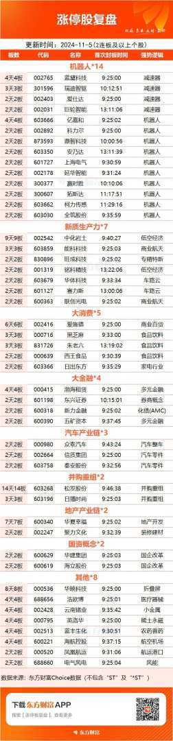 在个股方面,机器人概念股表现抢眼,多股涨停,其中蓝黛科技更是实现4连板,上海电气也成功收获2连板,此外,爱仕达、巨轮智能、亿嘉和等个股也纷纷涨停。大金融板块同样大涨,第一创业、华林证券、赢时胜、新力金融等个股涨停,为市场增添了不少活力。