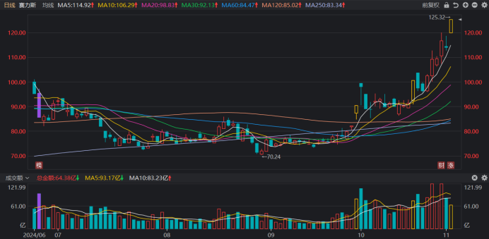 注:赛力斯今日股价再刷历史新高(截至11月4日收盘)
