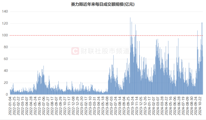注:赛力斯近年来每日成交额规模(截至11月4日收盘)