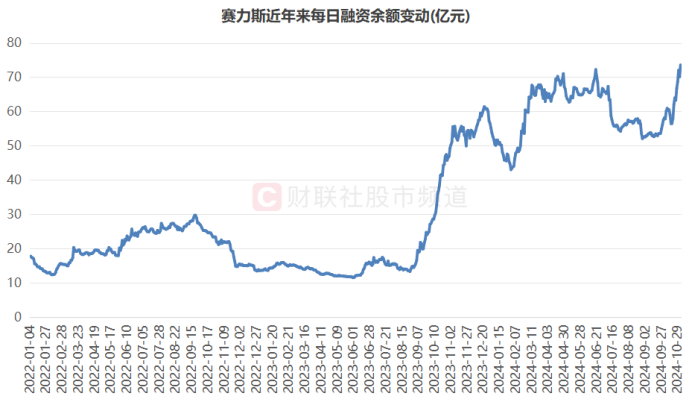 注:赛力斯近年来每日融资余额变动(截至11月1日数据)