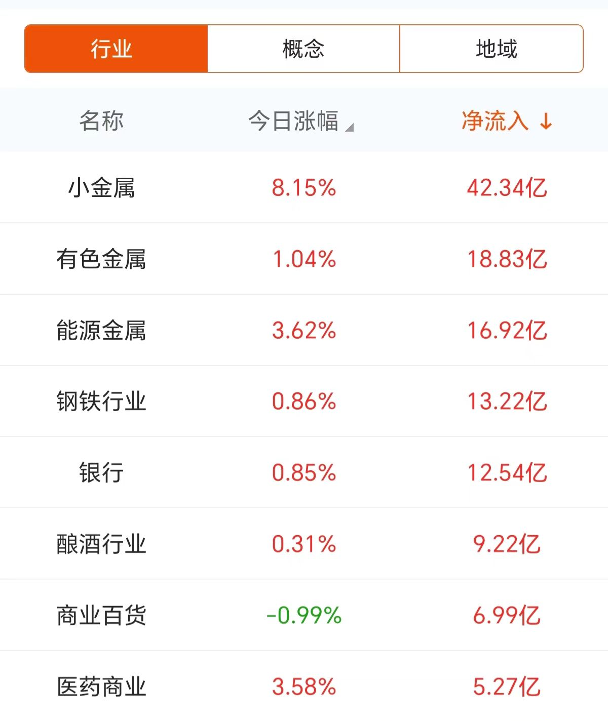 从主力资金动向来看,周五小金属和有色金属板块表现强劲,资金净流入明显,其中小金属板块净流入高达42.34亿元。在个股方面,永辉超市和通富微电成为当日主力净买入的前两名,分别净买入10.11亿元和8.96亿元,且均涨停。