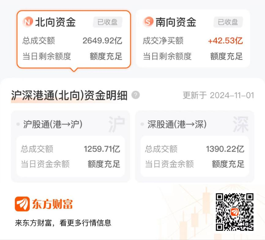 而在主力净卖出方面,TCL科技和四川长虹分别位居前两位,净卖出金额分别为45.91亿元和39.32亿元。此外,北向资金当日成交2649.92亿元,占沪深两市总成交额的11.88%。
