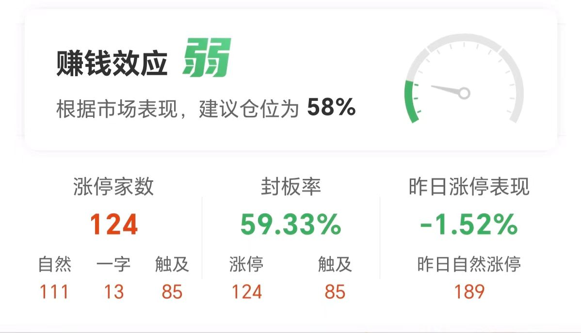 此外,陆股通净买入张江高科2.9亿元,而卧龙电驱则遭净卖出1.7亿元。涨停个股数量方面,截至收盘共有124股涨停,另有85只个股盘中一度触及涨停,封板率为59.33%。