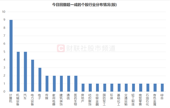 注:今日回撤超一成的个股行业分布情况(截至10月23日收盘)
