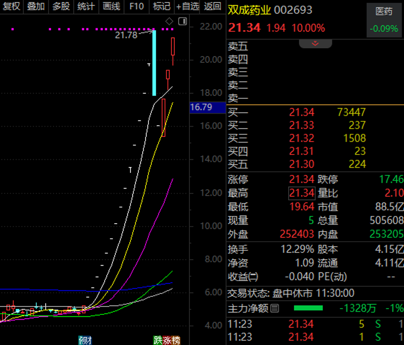 在金融+科技概念的引领下,长亮科技、晶瑞电材、光智科技等个股纷纷“20cm”涨停。进一步分析发现,科技方向的重组题材股表现尤为突出,如双成药业已经连续三个交易日涨停,光智科技、经纬辉开等个股也因涉及相关概念而“20cm”涨停。此外,文一科技在早盘开盘时即出现巨量涨停,正式加入了科技重组题材阵营,其封单一度接近百万手,达到99.4万手。