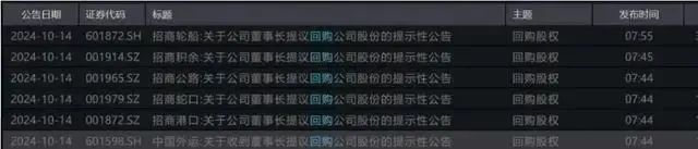 10月14日,招商局集团等多家上市公司披露回购或增持计划,A股三大指数集体大涨。同时,央行将创设股票回购增持再贷款政策,但多家公司和银行对此持谨慎态度,等待相关细则出台。